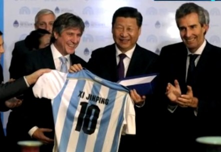 习近平出访阿根廷获赠两件球衣