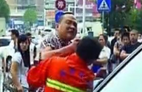 实拍环卫工无意将水溅到路人遭殴打瘫倒