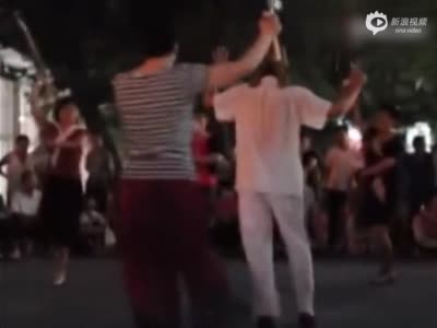 实拍北京大妈街头持枪跳舞“打鬼子”