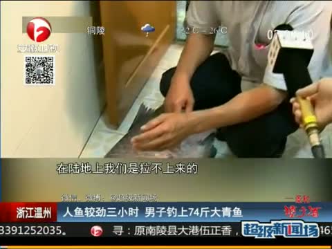 浙江男子与鱼较劲三小时 钓上74斤大青鱼