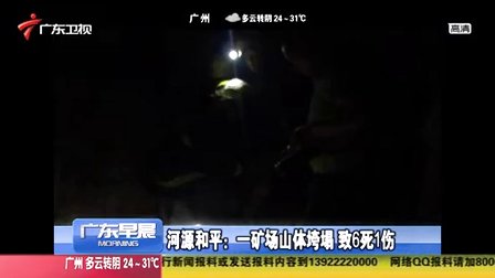 广东河源暴雨致矿场山体垮塌造成6死1伤