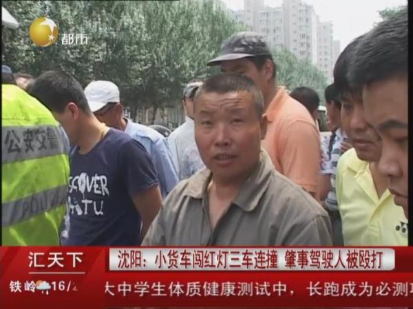 沈阳一小货车闯红灯三车连撞 肇事司机被殴