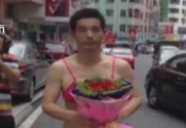 四旬电工闹市穿比基尼向白富美求婚