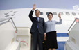 李克强抵非同夫人程虹手挽手走下飞机