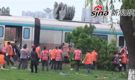 实拍北京地铁四号线一测试车辆冲进绿地