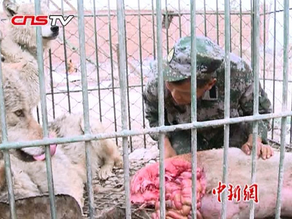 新疆狼爸与5狼抢肉吃:我是狼王 我先吃