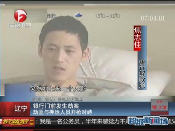 监拍银行门前押运人员与劫匪开枪对峙