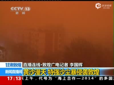 实拍特强沙尘暴袭甘肃 天空通红黄沙弥漫