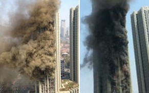 大连星海广场一高层公寓起火 全楼被浓烟笼罩
