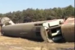 黑龙江列车脱线现场 3节车厢整体侧翻