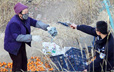 兰州货车侧翻桔子险遭哄抢 民警持枪制止