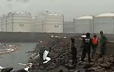山东青岛入海油污清理现场 已收集混合物80吨