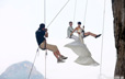 “女汉子”穿婚纱攀岩 拍摄酷炫婚纱照
