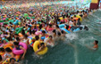 四川遂宁桑拿天 万名游客挤爆“中国死海”