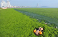 青岛大量绿色浒苔堆积成灾 海滩变草原