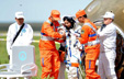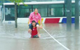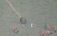 壮汉暴雨中被困 骑消防员脖子蹚水引争议