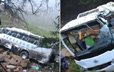 实拍新疆大巴冲下山坡现场 车体严重变形