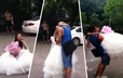 逆袭!大四女生身穿婚纱 校园内向男友求婚