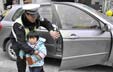江苏一交警每天抱上百孩子 被称抱抱哥