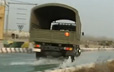 实拍汽车兵在模拟冰雪路面高超滑行驾驶