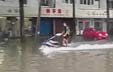 实拍:天津暴雨男子街头骑摩托艇飞驰