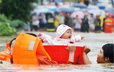 实拍湖南暴雨消防员用澡盆转移婴儿