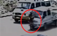 监拍女子下车后穿越马路被面包车撞飞
