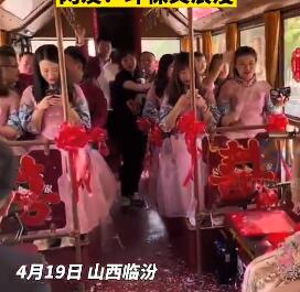 新婚夫妇用公交车当婚车 一路欢歌笑语