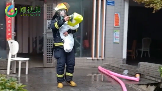 长沙一小区起火 消防员徒步爬27楼灭火救出60余人