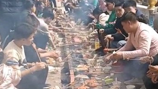 过年留守老人儿童用砖头搭烧烤架聚餐 网友:这才是过年的气氛
