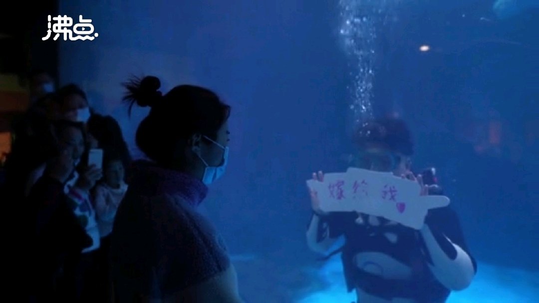 浪漫!武汉小伙情人节水下同白鲸求婚女友