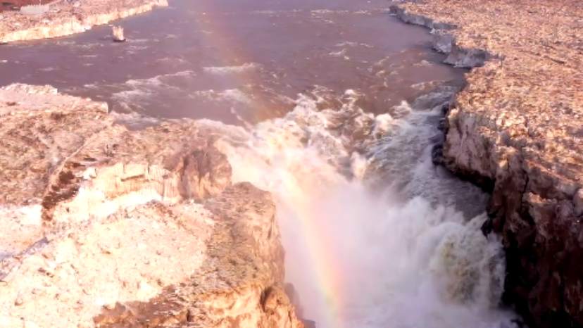 美!黄河壶口瀑布冰河解封映彩虹