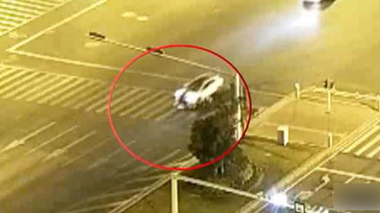 监拍:电动车闯红灯被压车底 与地面擦出一道火花